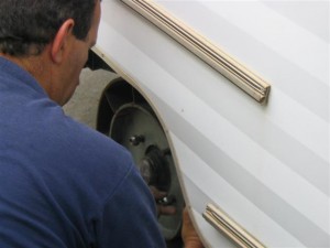 The process summarised above is pretty much correct. The problem, though, is that the carport referred to is a bit on the low side. The caravan cannot pass underneath it. But that is not a problem for Frikkie. He made himself two small steel wheels that fit on the caravan. The wheels are small enough to lower the caravan just enough for it to pass underneath the carport.